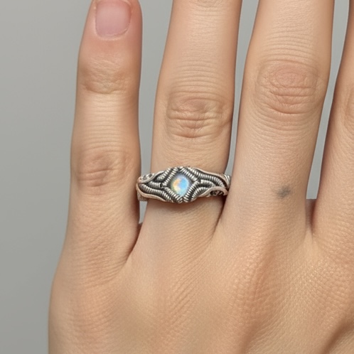 Anel de Pedra da Lua Facetada em Prata 950 – Coleção Éteris