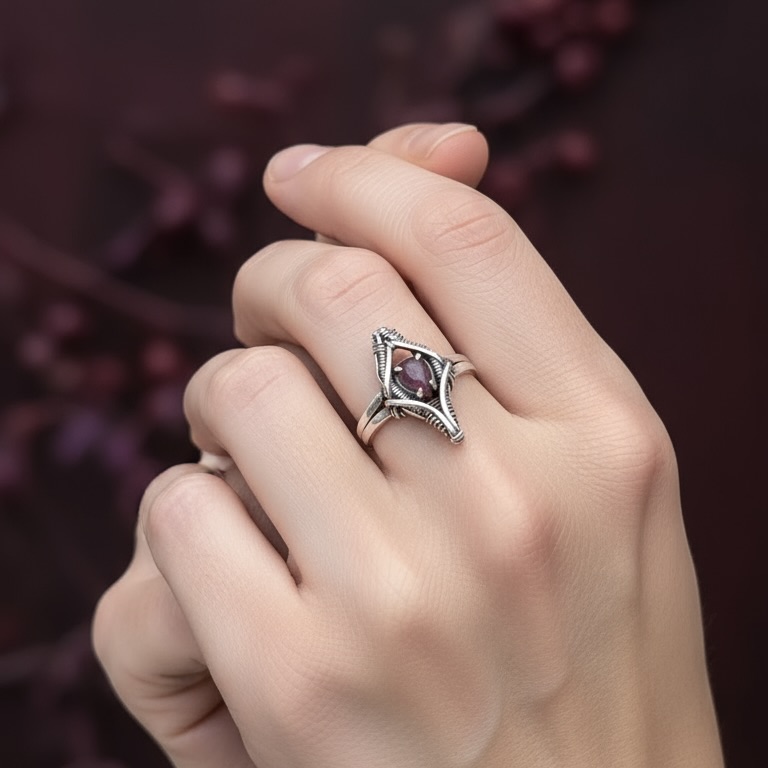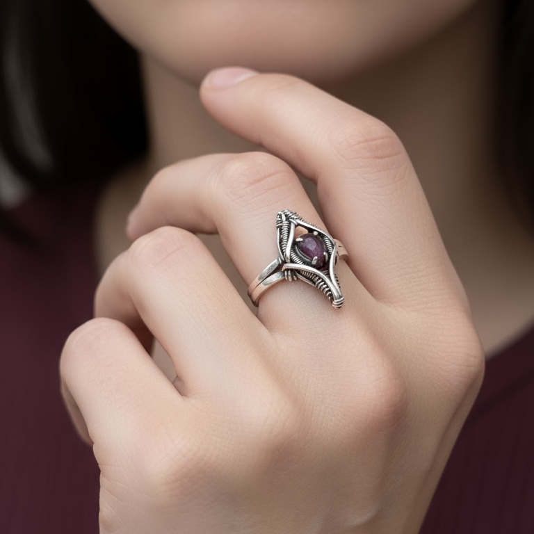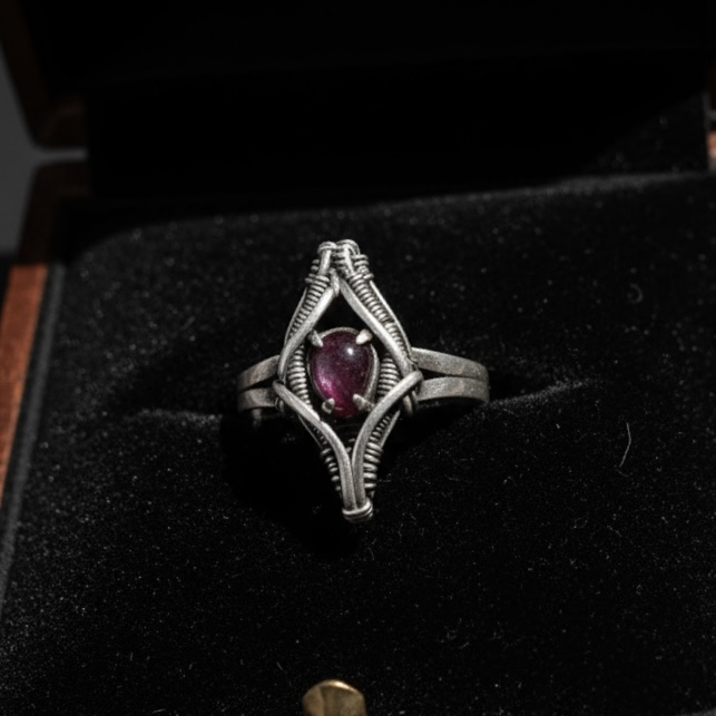 O anel Ascensus é desenvolvido em prata 950 com técnica de wirewrap avançada, apresentando estrutura reforçada e simetria precisa. A peça central traz rubelita (turmalina rosa), selecionada pela qualidade e características ópticas únicas. A Coleção Ascensus simboliza a elevação técnica e estética do design wirewrap, onde cada fio é tensionado manualmente para moldar uma estrutura que protege e valoriza a pedra. As propriedades naturais de rubelita (turmalina rosa) complementam a proposta da coleção, unindo resistência, harmonia e expressão energética.