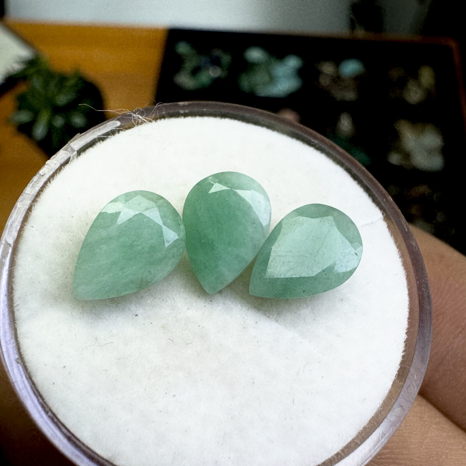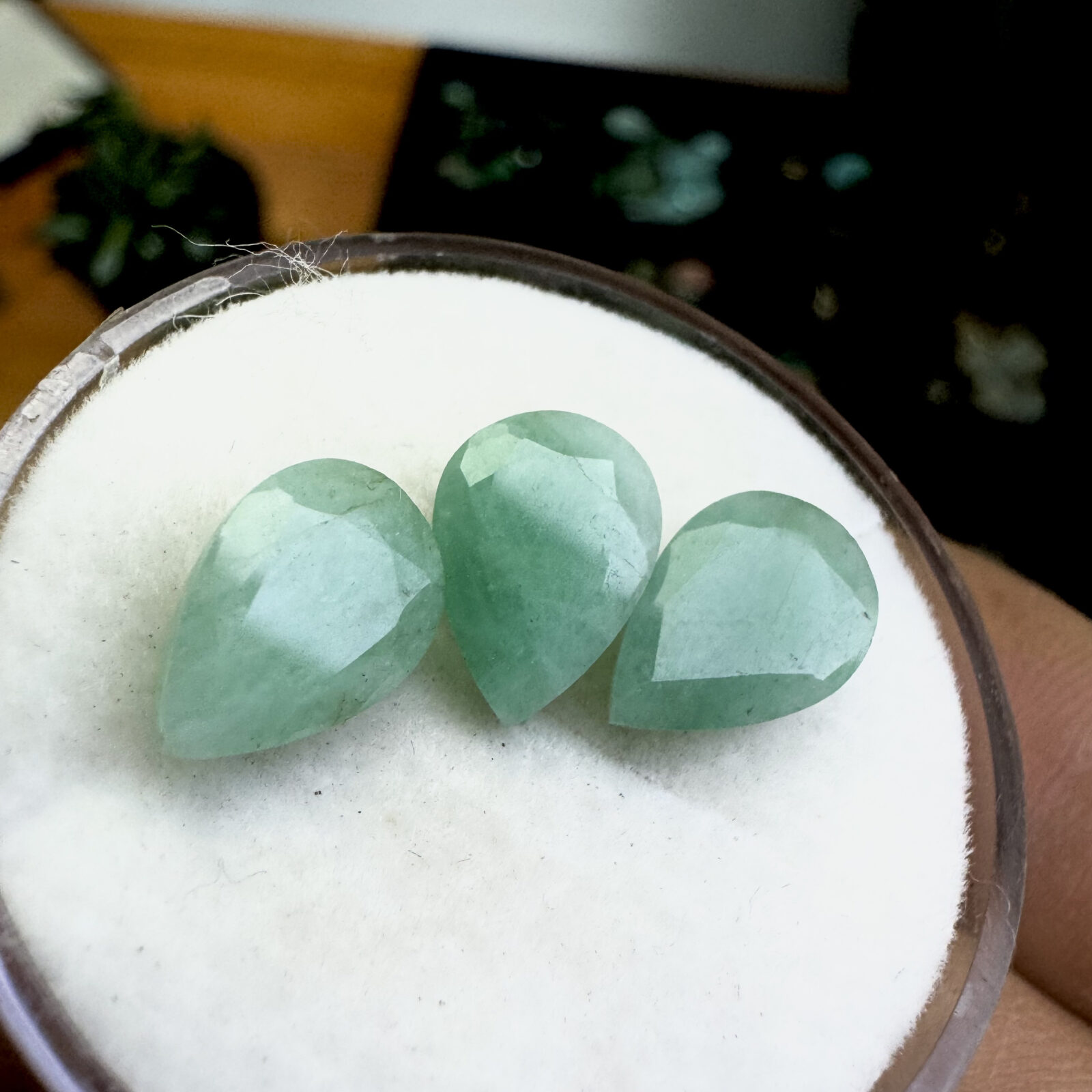 Esmeralda natural com tonalidade verde intensa e inclusões características. Lapidação facetada que valoriza o brilho e a profundidade da cor.