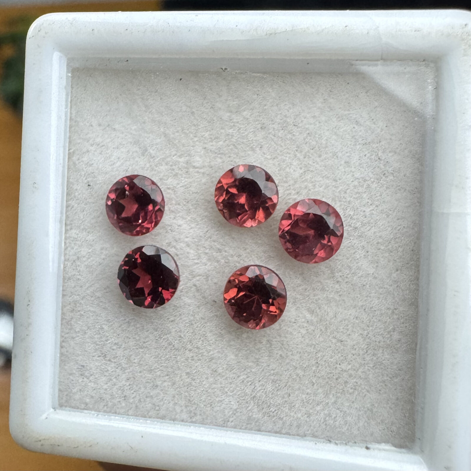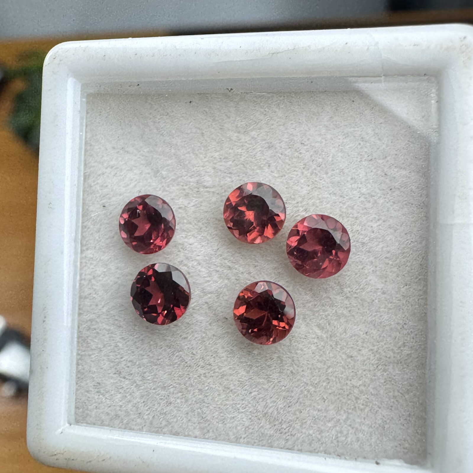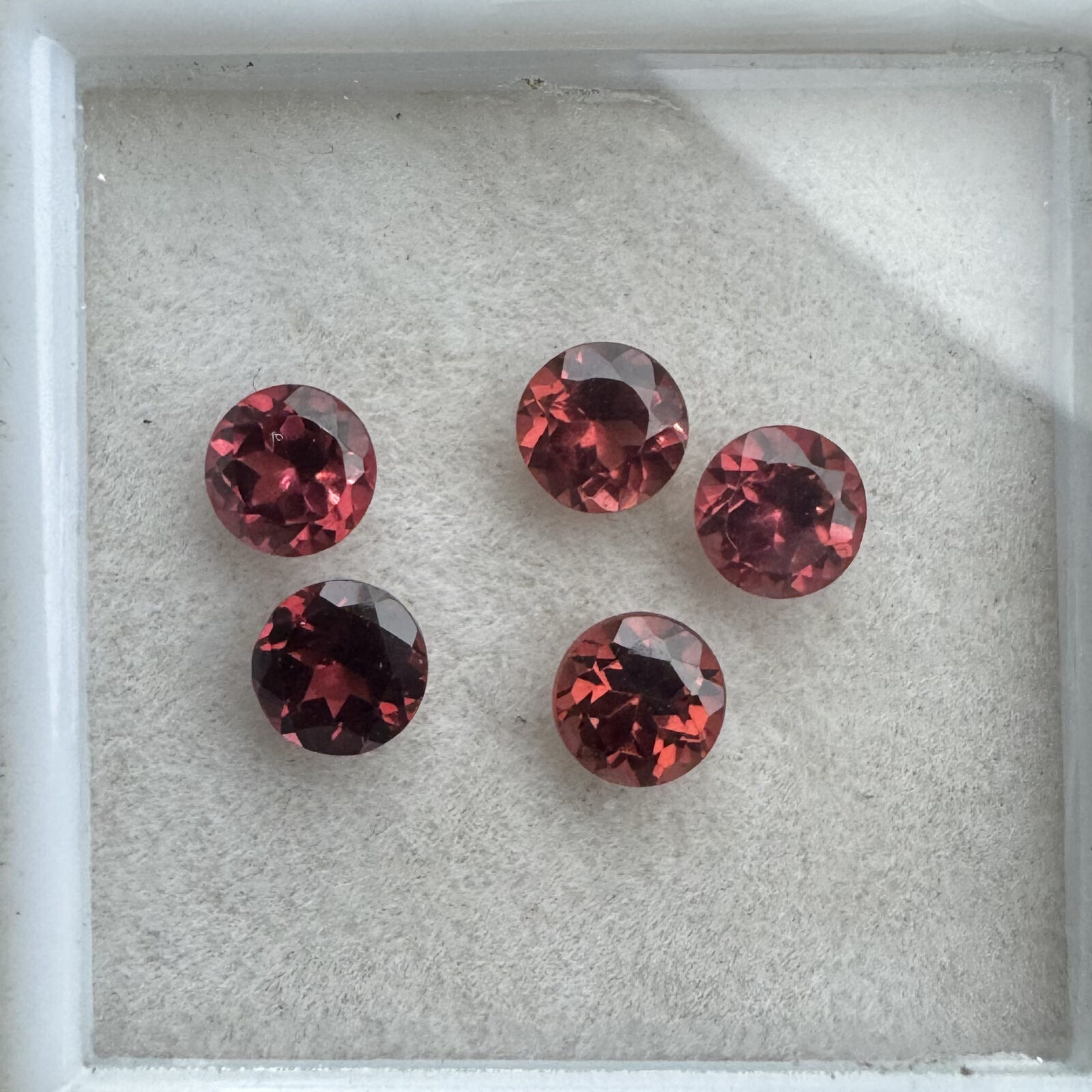 Granada natural de coloração vermelho-escuro intensa, brilho vítreo e excelente lapidação.