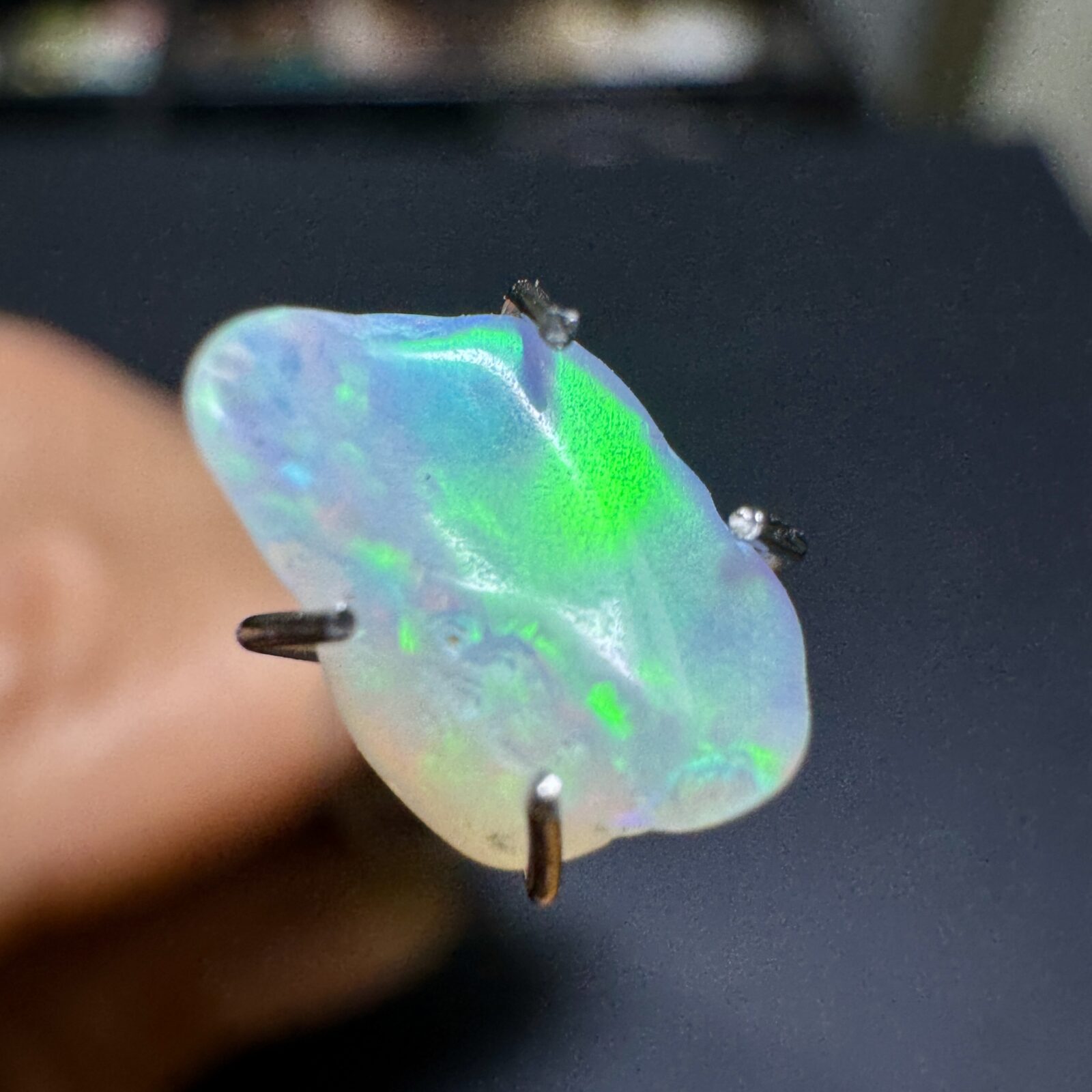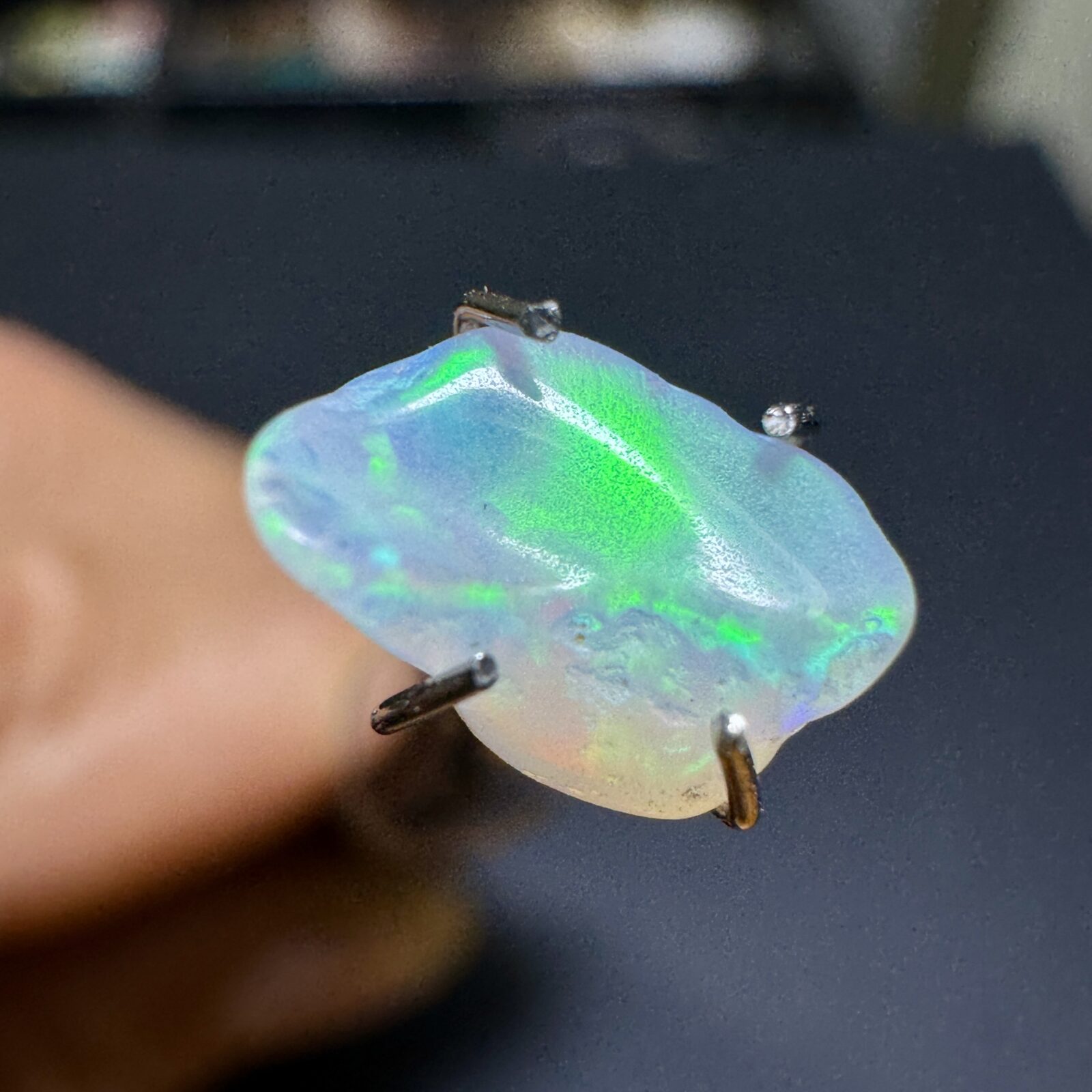 Opala natural bruta em estado original, com jogo de cores visível sob luz direta.