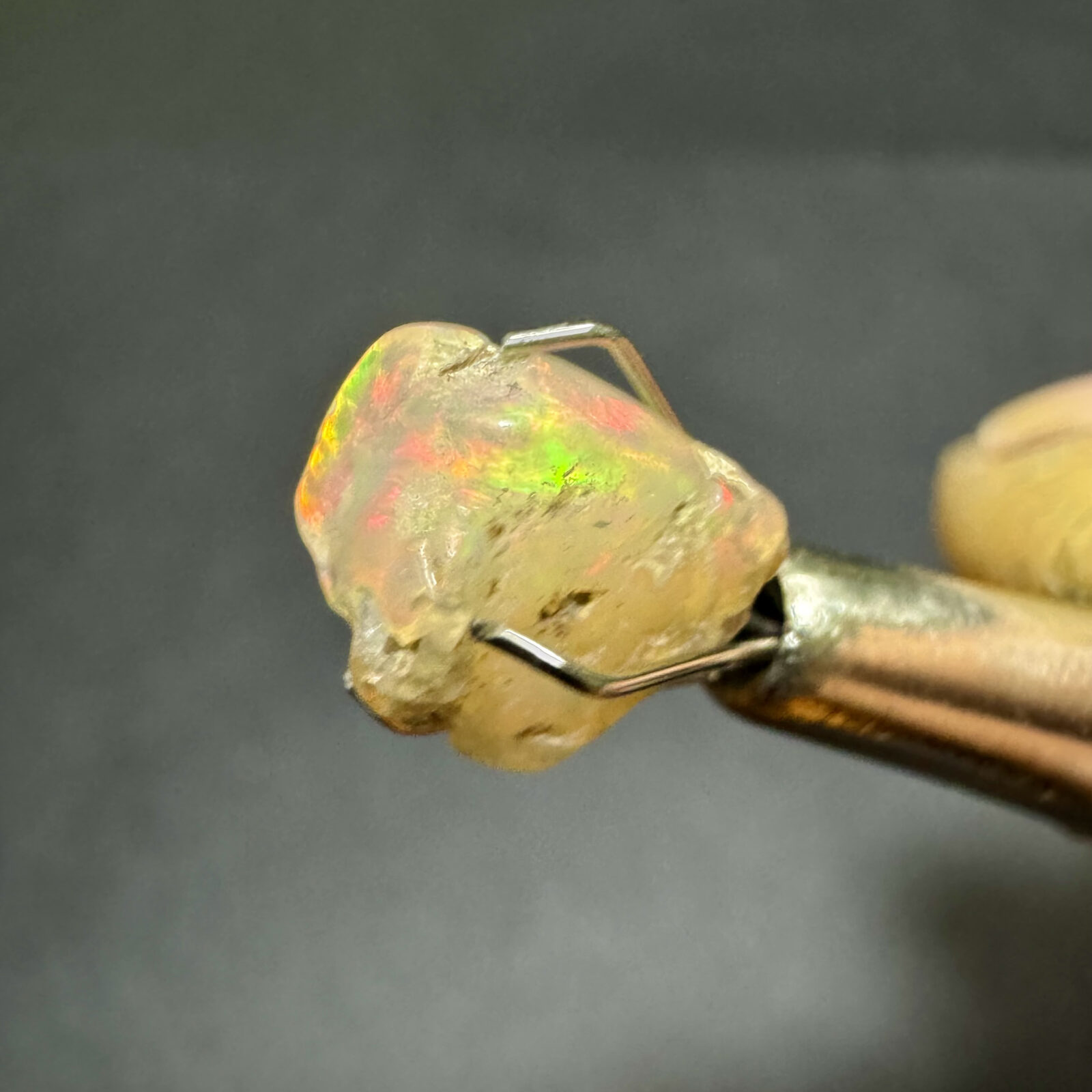 Opala natural bruta em estado original, com jogo de cores visível sob luz direta.