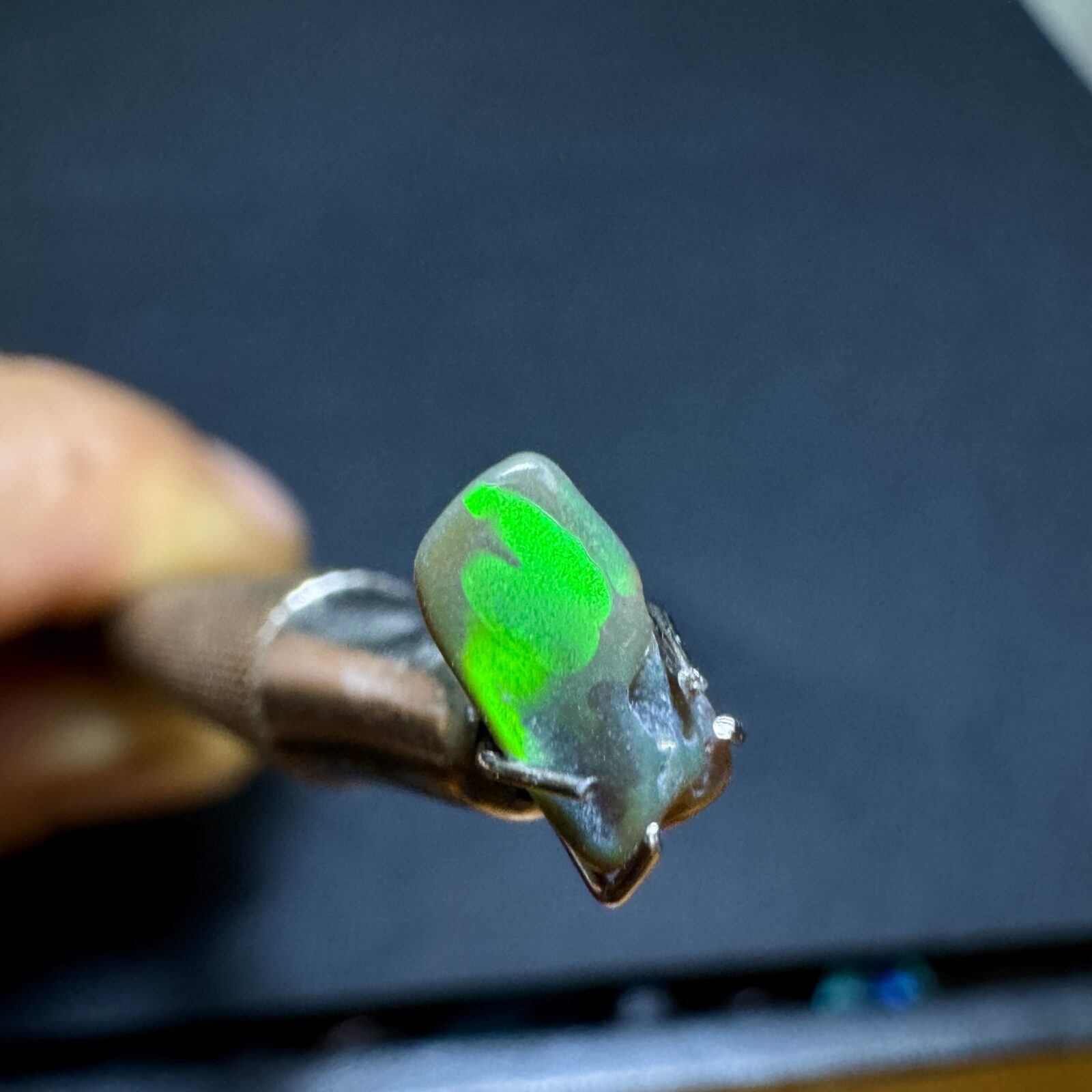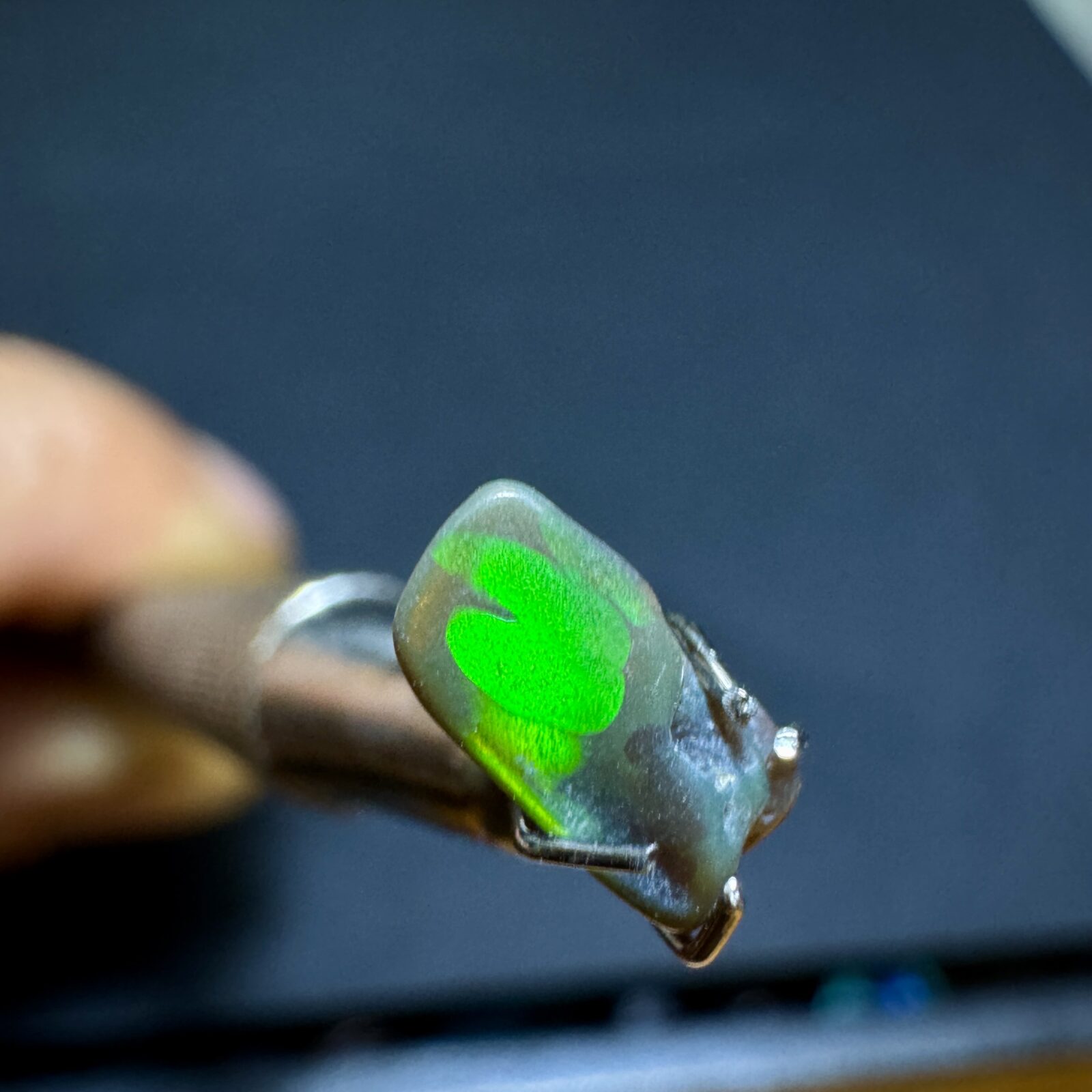 Opala natural bruta em estado original, com jogo de cores visível sob luz direta.