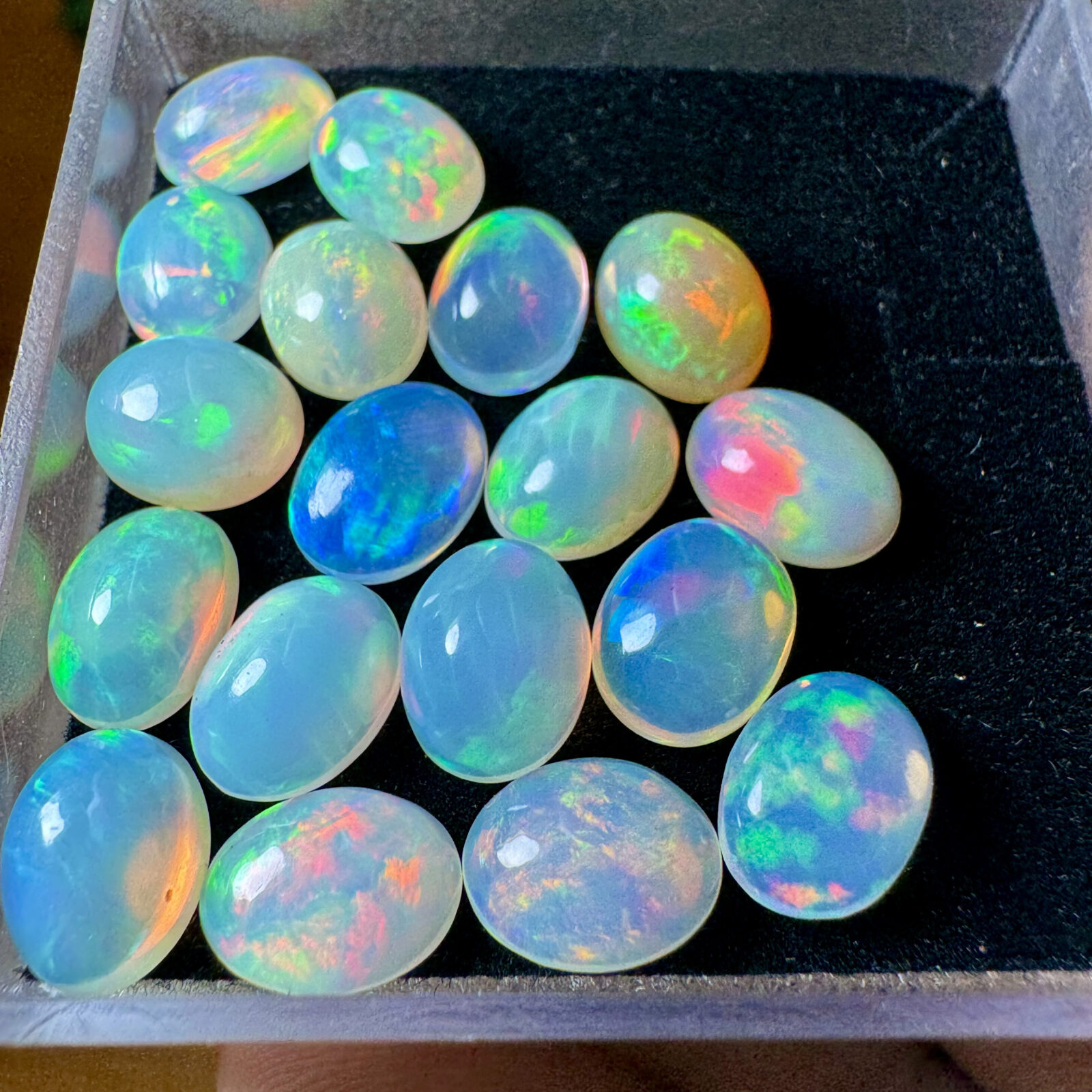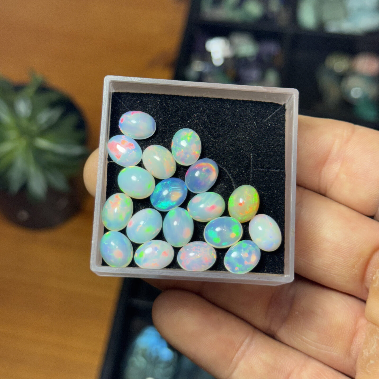Opala natural lapidada Cabochão, com jogo de cores intenso e brilho interno característico.
