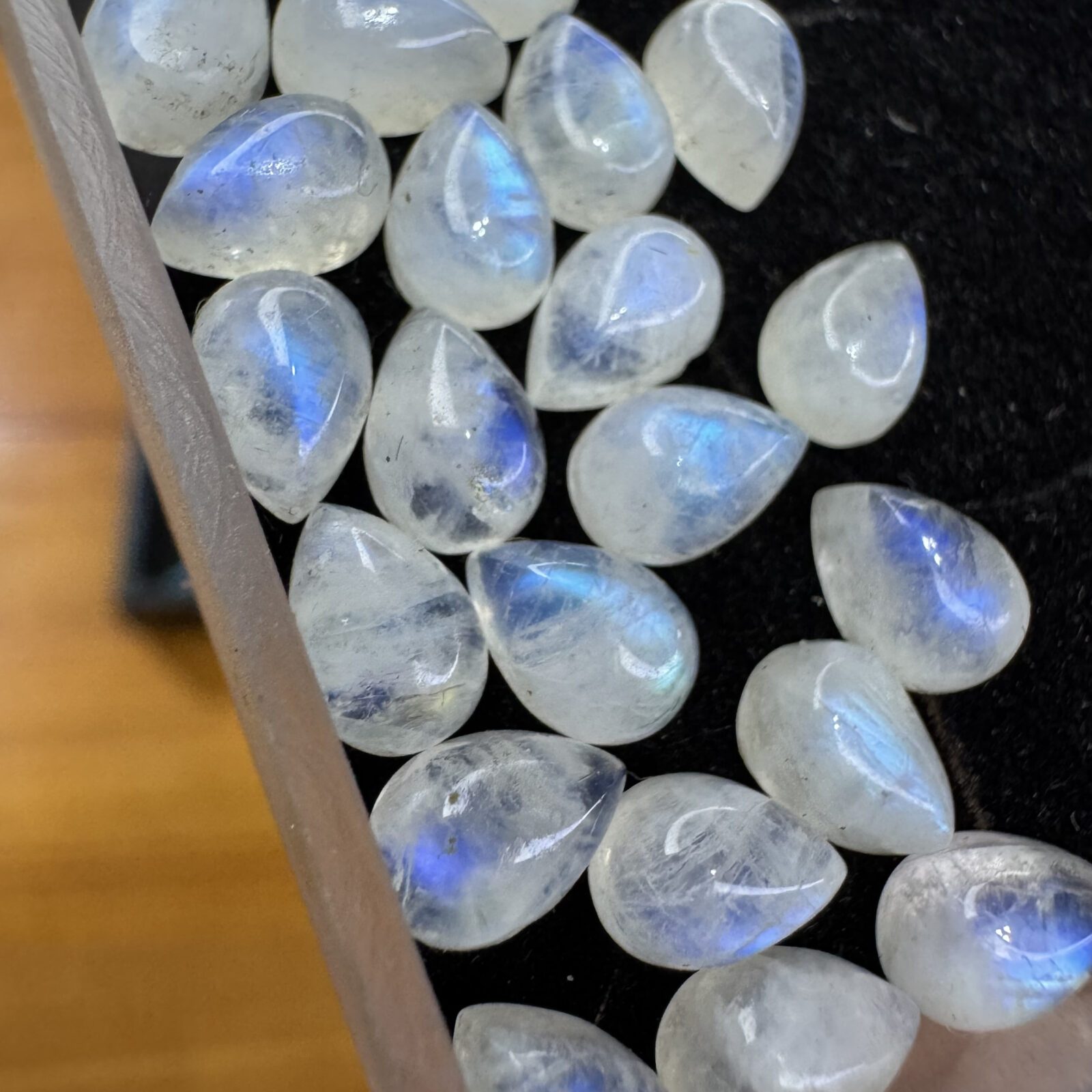 Pedra da Lua cabochão com adularescência, polida e pronta para montagem.