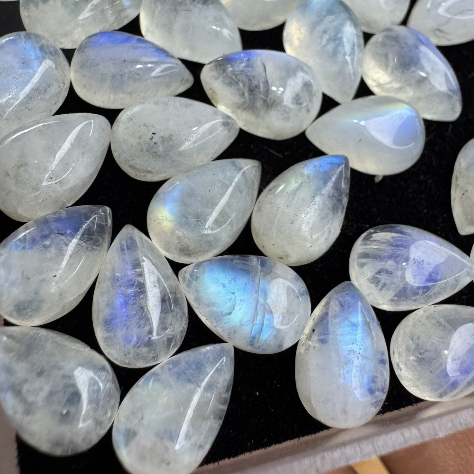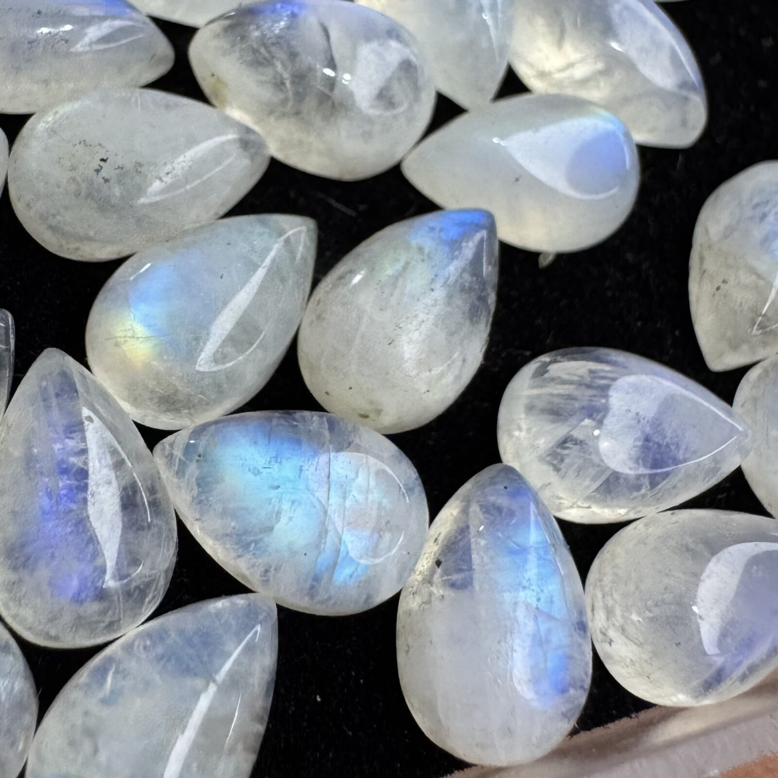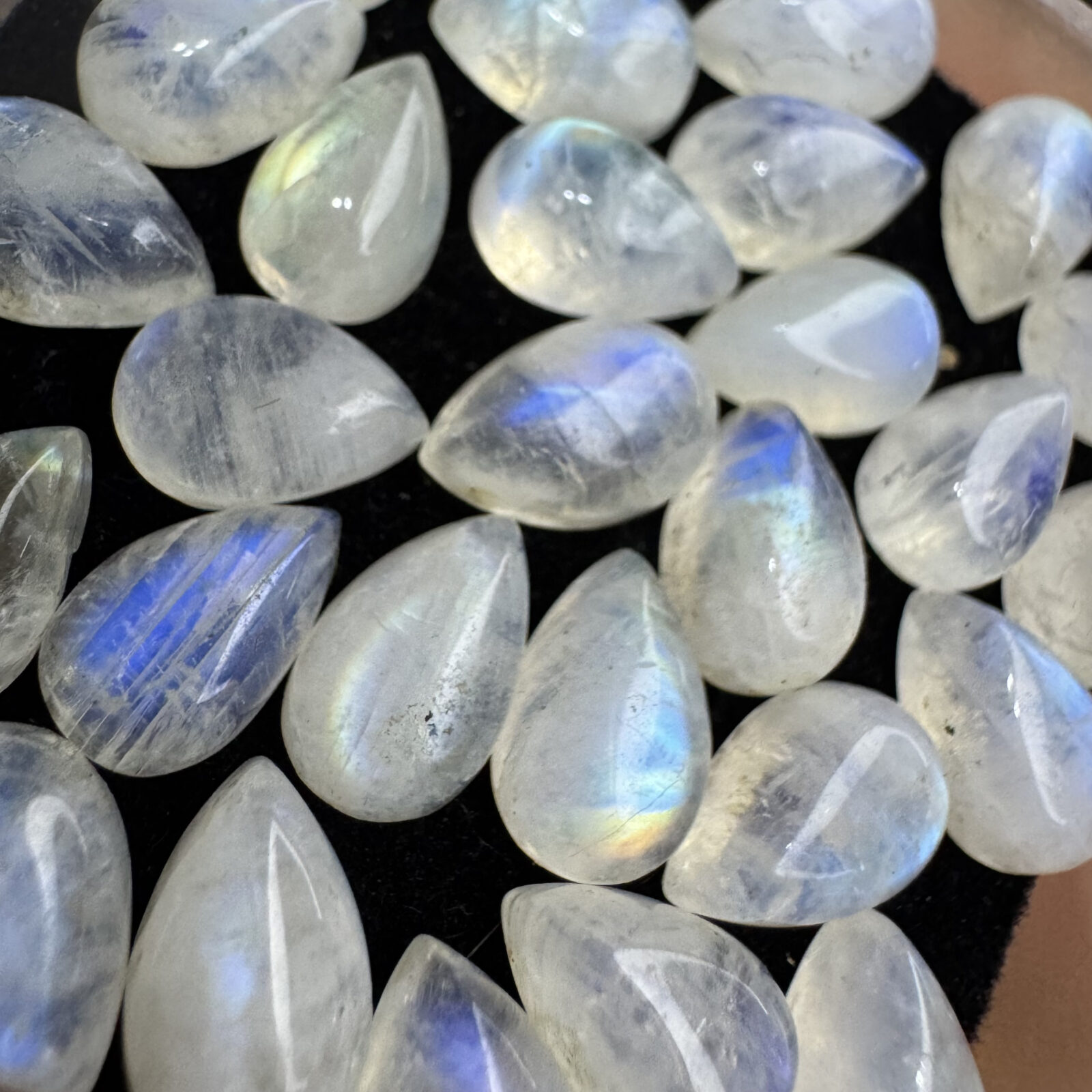 Pedra da Lua cabochão com adularescência, polida e pronta para montagem.
