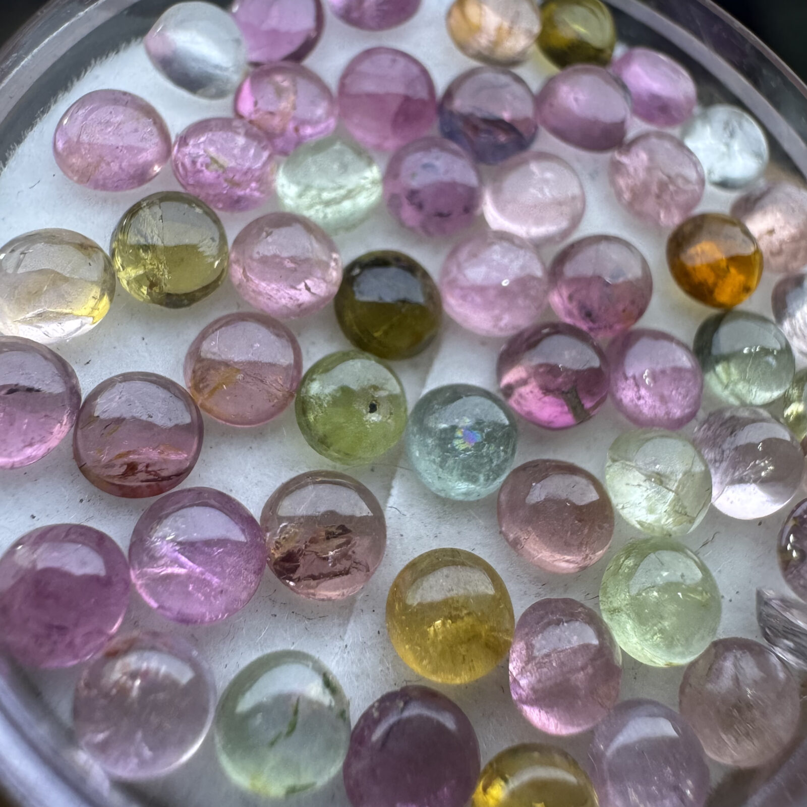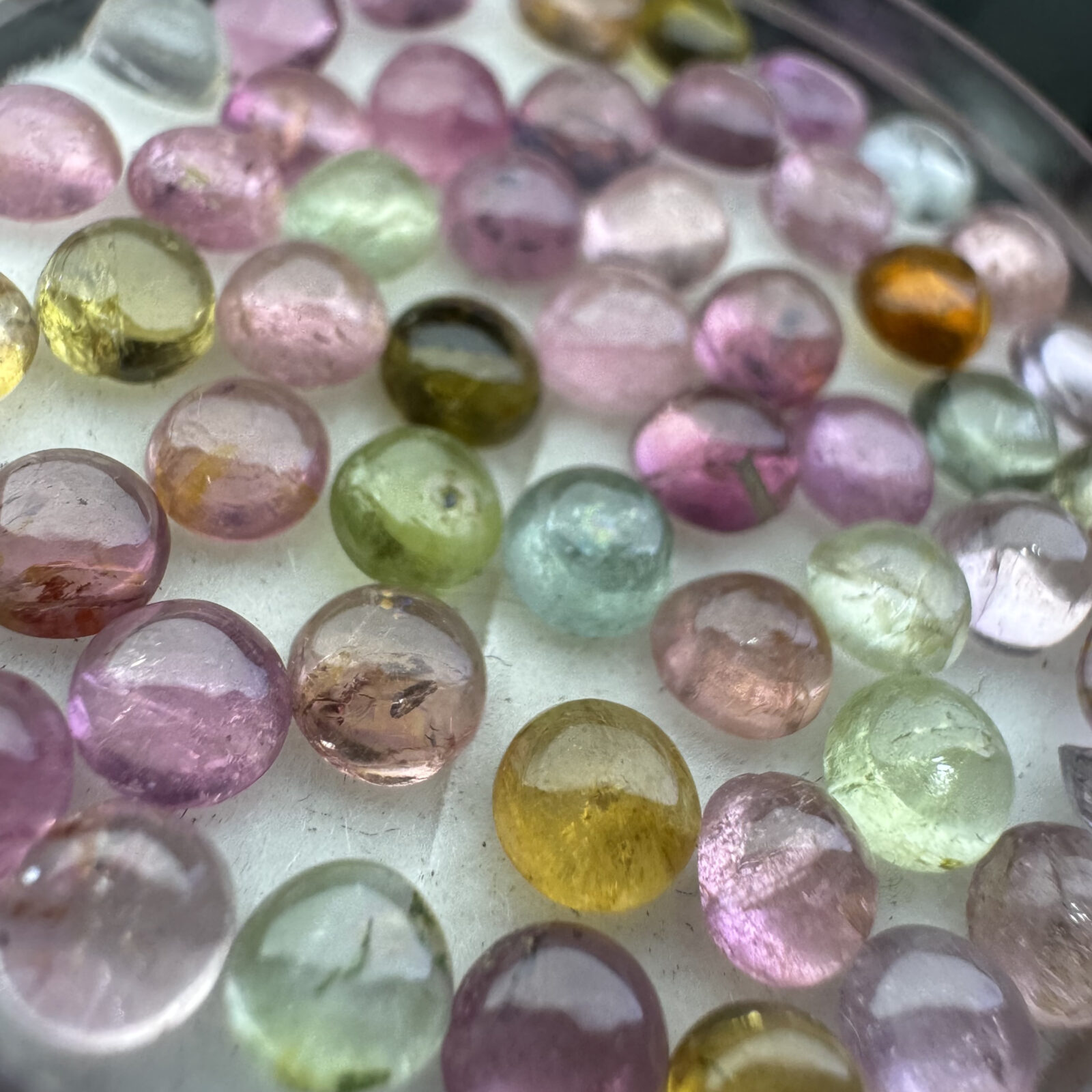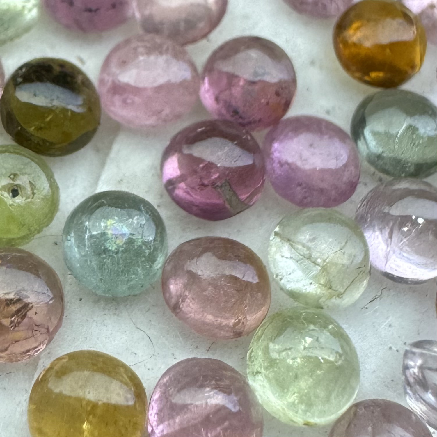 Conjunto de 10 turmalinas naturais com cores variadas, lapidações uniformes conforme o formato indicado. Tamanhos compatíveis com cravações comerciais, polimento regular e calibração adequada para produção em série. Fornecimento em lote fechado de 10 unidades de cores mix, tambem disponivel na forma unitaria